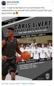 看球网8月29日讯 今天篮网球员勒维尔更新了社交媒体状态,为他的即将举办的训练营做宣传。